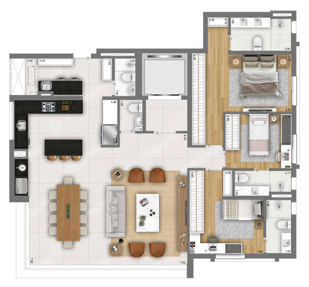 Com opções de plantas amplas, incluindo unidades de 3 e 4 suítes com vagas garantidas na garagem, cada espaço foi planejado para oferecer conforto, funcionalidade e sofisticação, elevando o seu dia a dia.